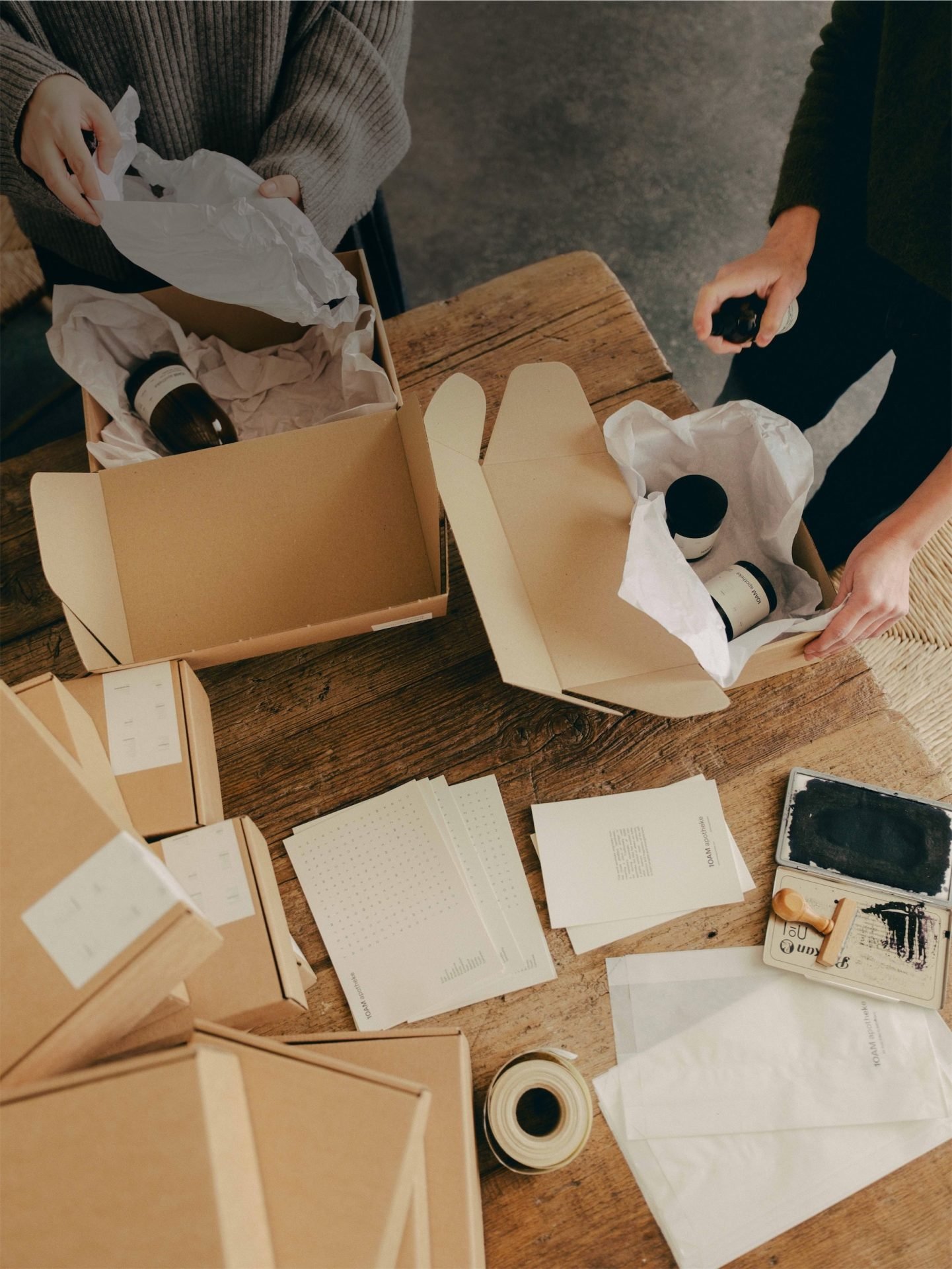 Each gift box is assembled by hand using natural materials and lined with soft off-white tissue, and each item is wrapped thoughtfully.