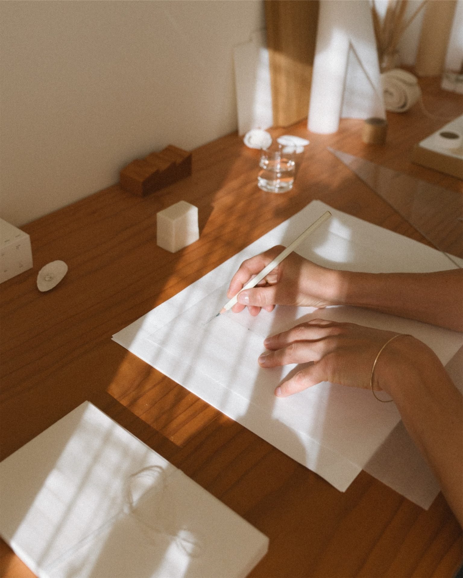 The soaps, which I have in both my bathroom and on my home studio desk. In a ritual way, their natural, earthy scents connect me to my core and my roots. I also love the calming sweetness of the Beeswax Balm, which I use on my face and lips every night before going to sleep.