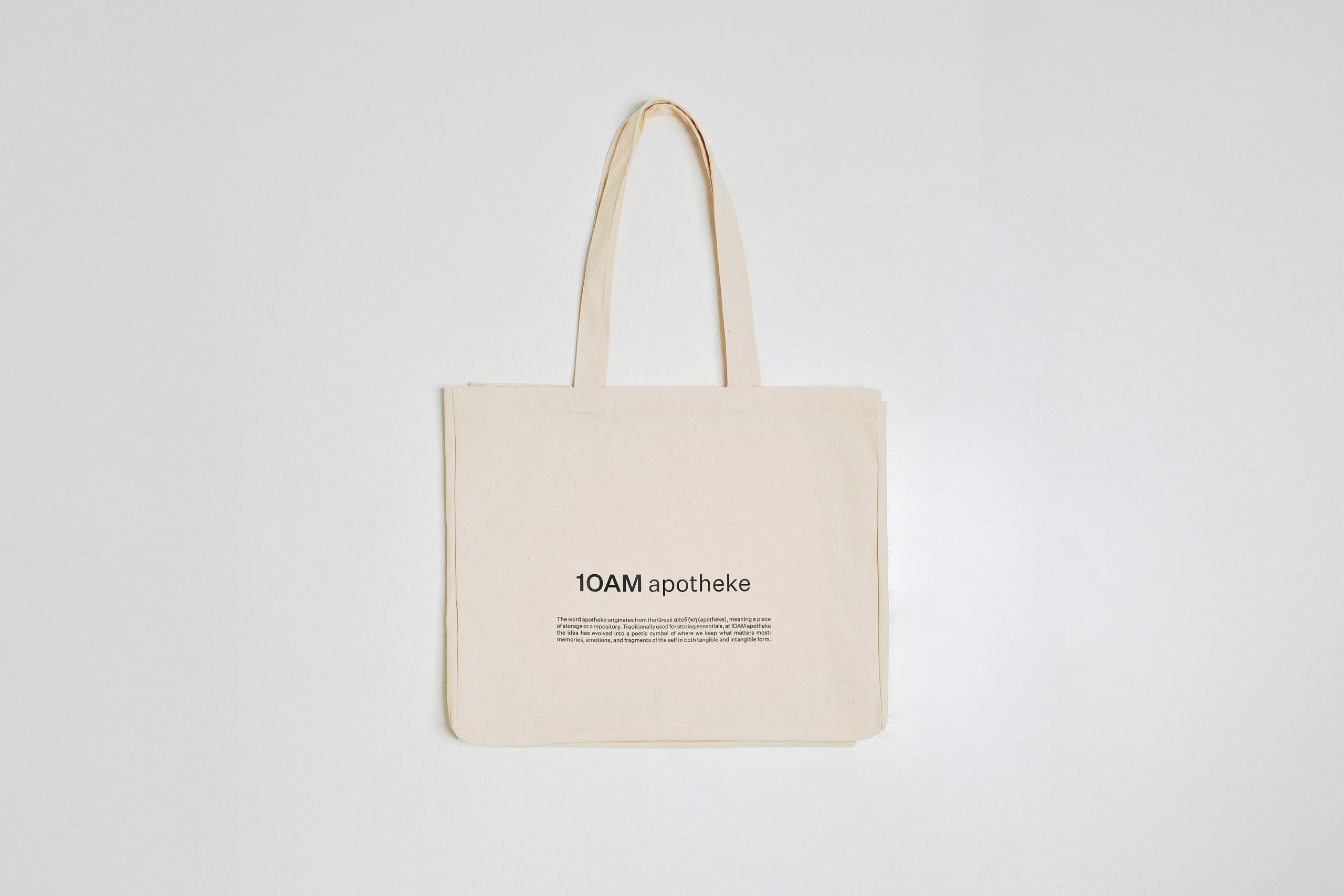 Made from 100% undyed natural cotton canvas, this tote bag carries the story behind 10AM apotheke’s essence—quiet, thoughtful, and rooted in everyday ritual. A simple, durable companion for your daily movements, shaped by the same sensibility that runs through the collection.