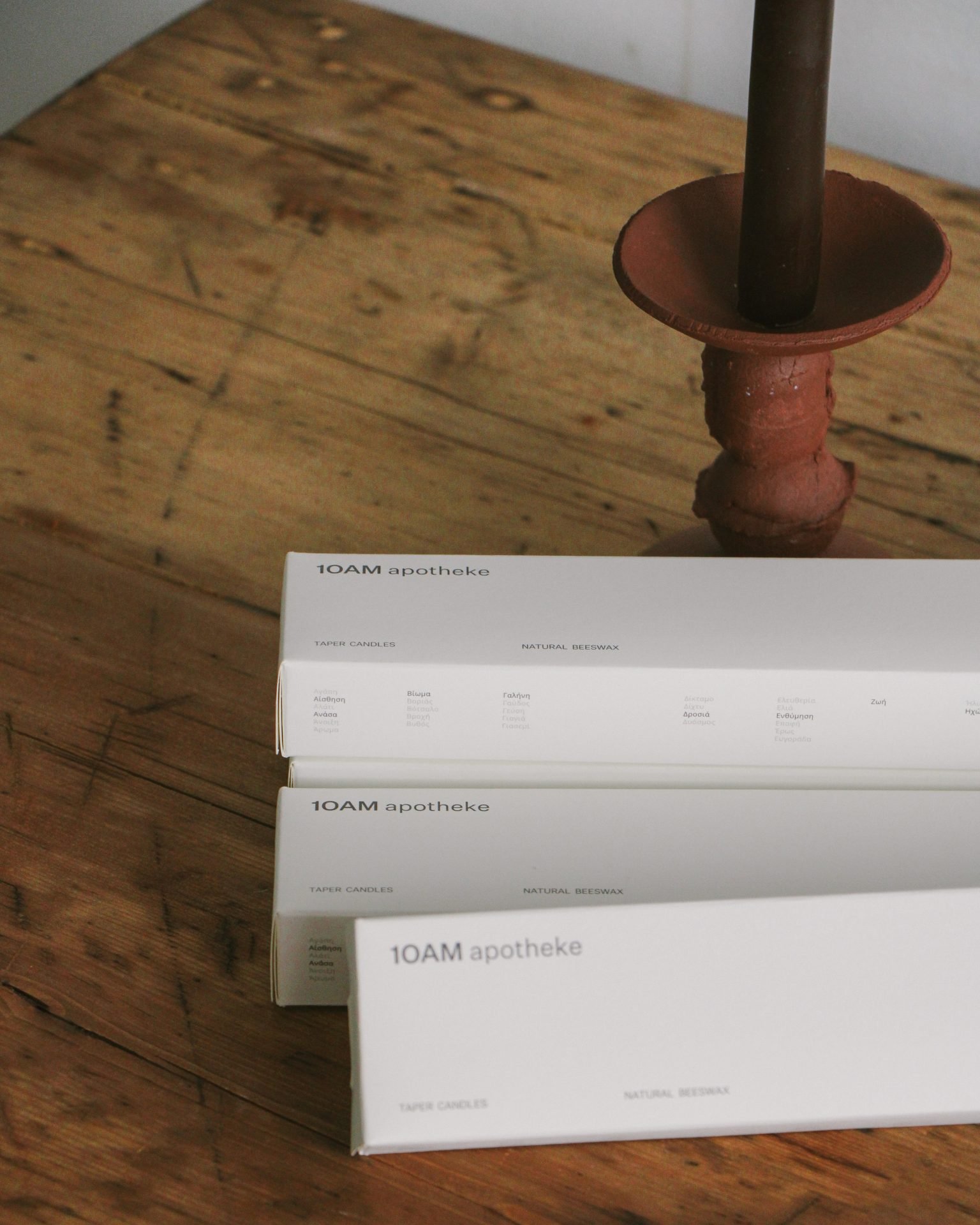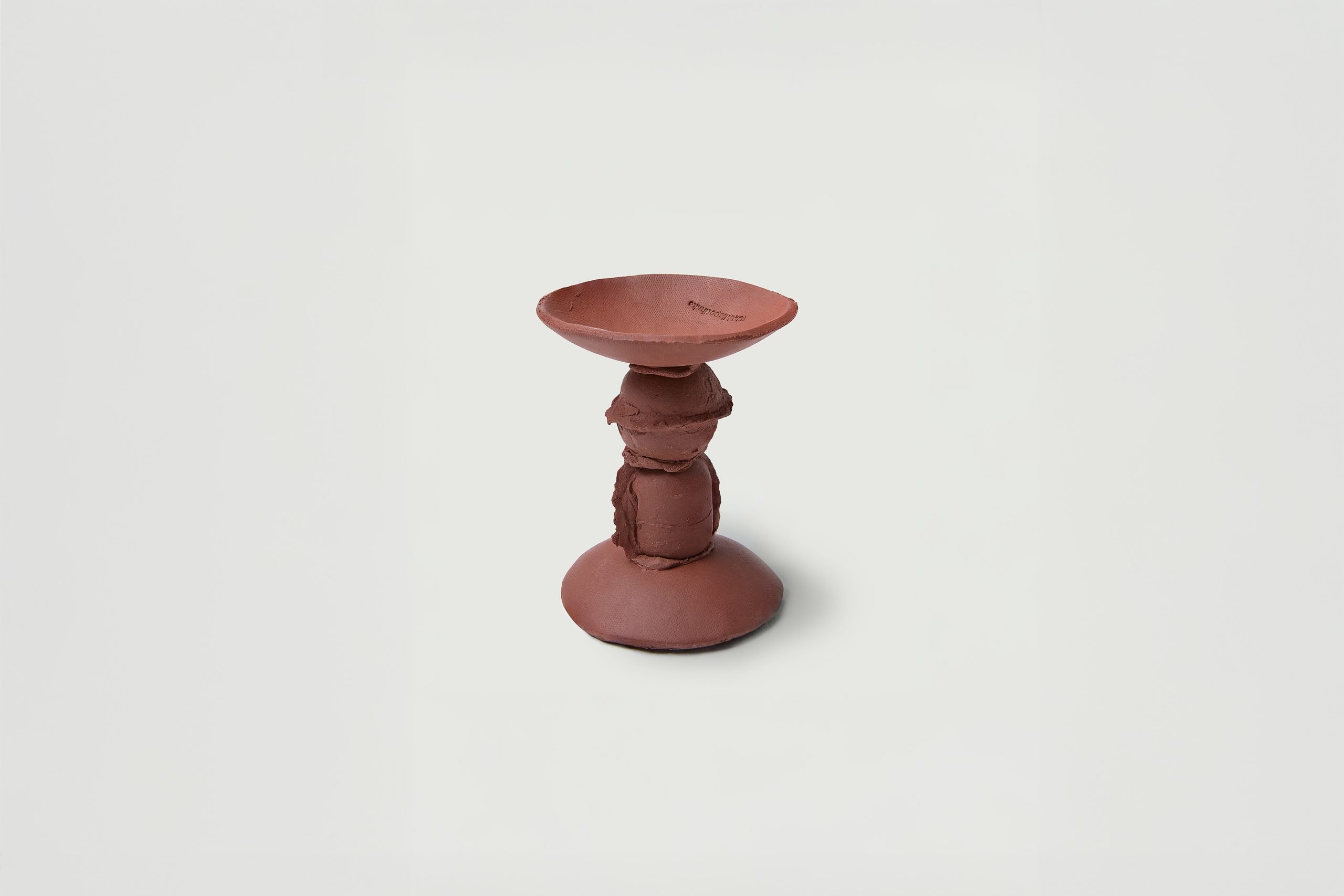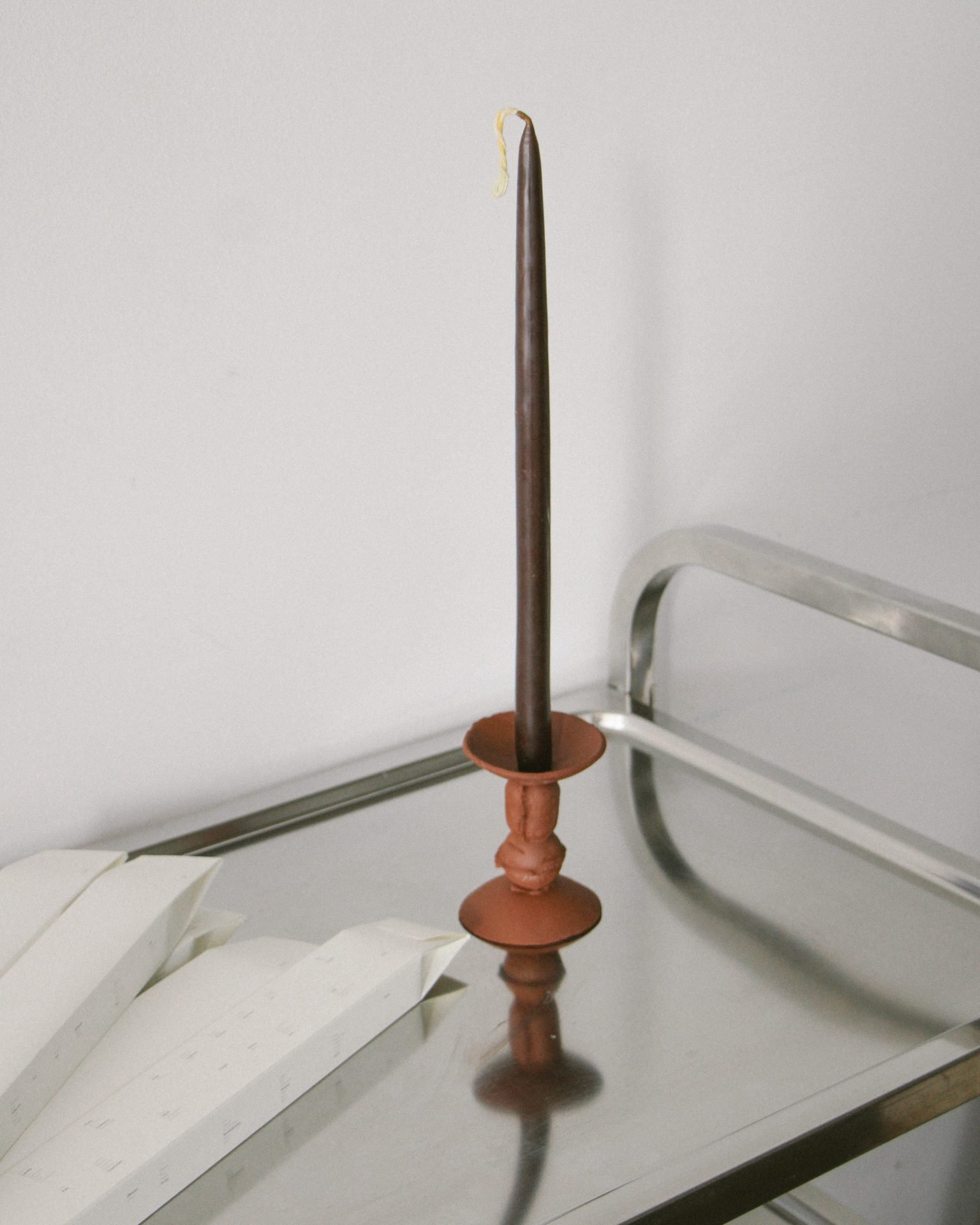 A candle holder shaped from warm terracotta clay, with a smooth, softly tactile surface. It invites a quiet ritual of lignt and scent, a refined yet grounding object for those who appreciate the beauty of imperfection