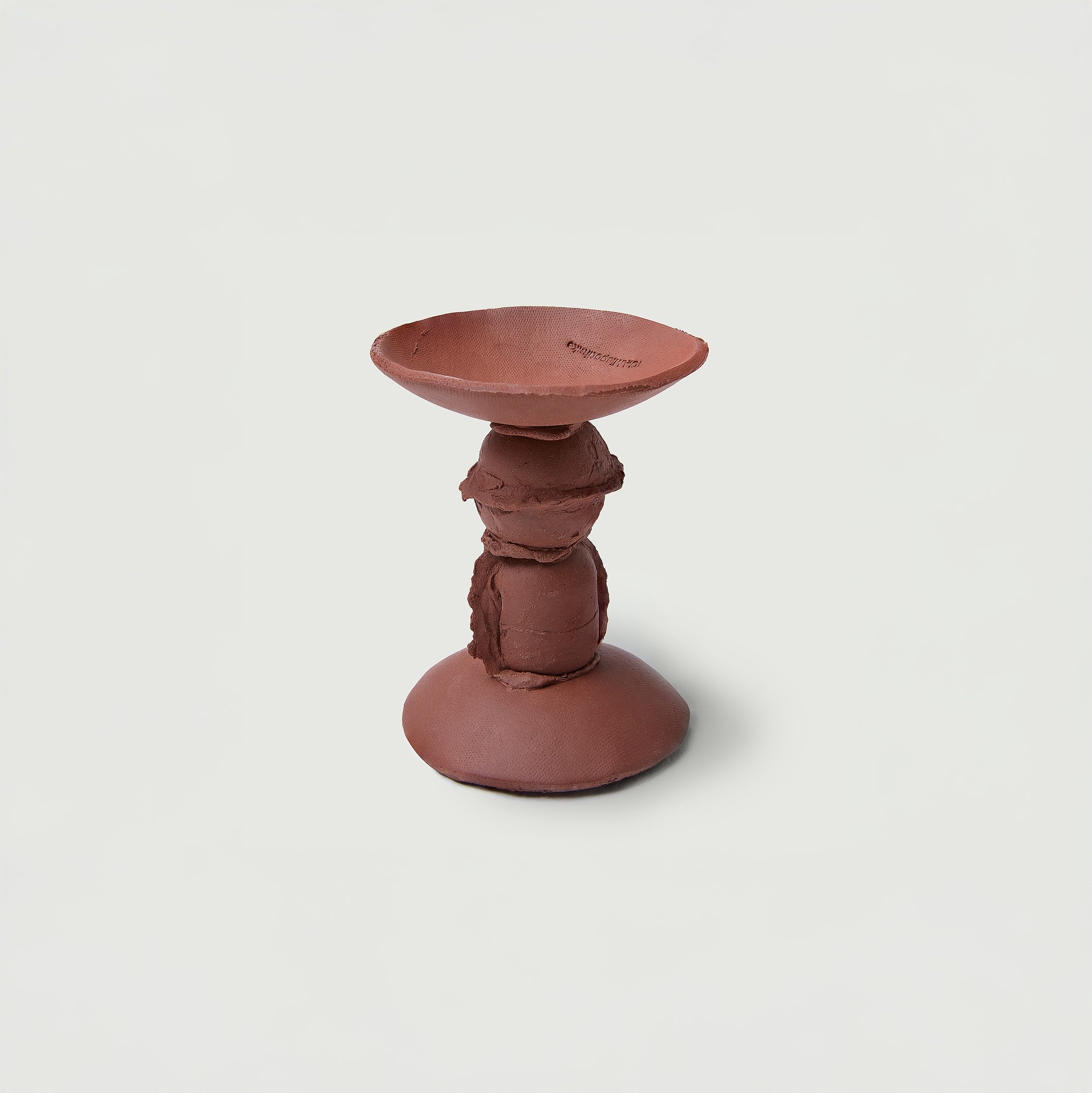 A candle holder shaped from warm terracotta clay, with a smooth, softly tactile surface. It invites a quiet ritual of lignt and scent, a refined yet grounding object for those who appreciate the beauty of imperfection