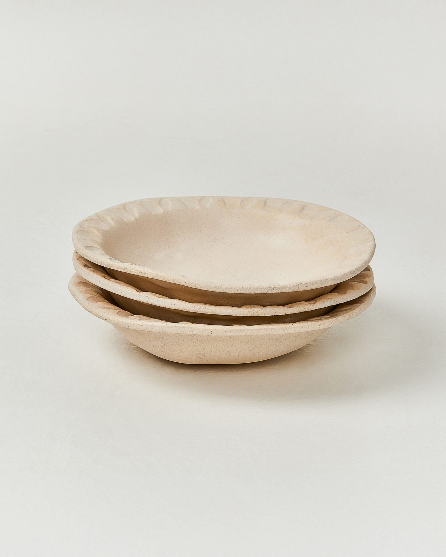 A limited edition of ceramic tableware, crafted with stoneware clay, fired at 1230°C and glazed using primarily olive tree ashes from messinia, greece. As if unearthed from the ground and deeply inspired by rocks and soil formations, this unique range celebrates the raw and unprocessed beauty found in nature and invites us to embrace a humble, honest and uncomplicated way of living. experience the unrefined charm of earthbound elegance.